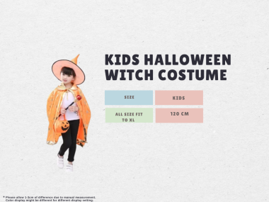 We are giving a FREE pumpkin bag with purchase of this witch cape! Your kids are ready to go for candy collection with the neighbours !